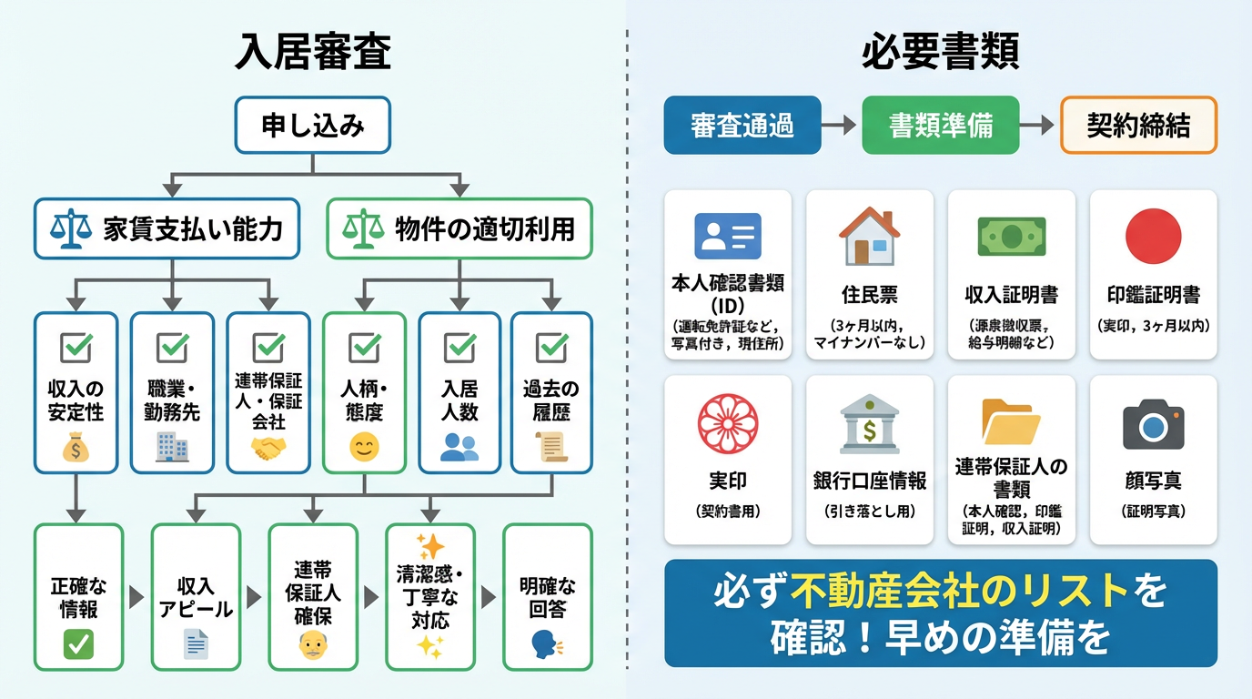 特に、入居審査は貸主が借主の支払い能力や人柄を判断する重要なプロセスです。審査基準や必要書類を理解し、迅速かつ正確に対応することで、希望の物件を逃すことなく契約に結びつける可能性が高まります。例えば、審査に必要な書類が不足していると、手続きが滞り、その間に他の申し込み者に物件が渡ってしまうこともあり得ます。事前に準備を整えることで、このような機会損失を防ぐことができます。