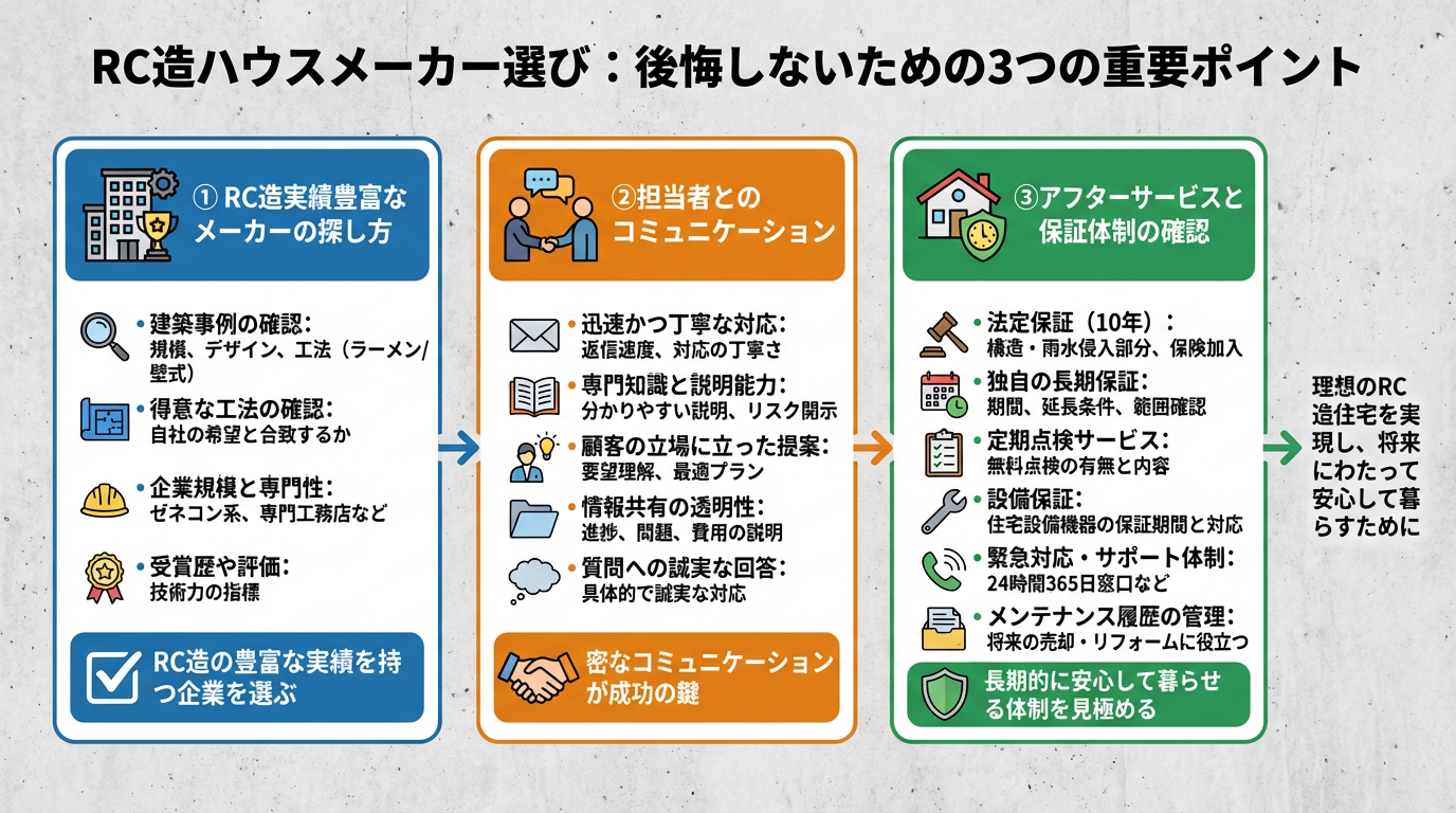 これらの情報を総合的に判断し、自身の理想とするRC造住宅の実現に最も適したパートナーを見つけることが大切です。
