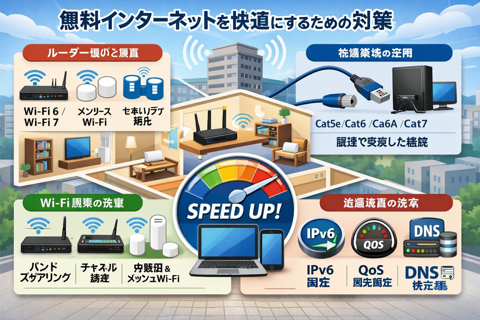 「マンションの無料インターネット」は、月々の費用を抑えられる魅力的なサービスですが、「本当に快適に使えるの?」「通信速度は遅くない?」といった不安を抱えている方も多いのではないでしょうか。この記事では、無料インターネットの仕組みや種類から、気になる通信速度の目安、遅いと感じる具体的な原因と診断方法を徹底解説します。さらに、ルーター選びや設定の最適化、トラブル解決策、契約前に確認すべき重要事項まで、無料インターネットを快適に利用するための具体的なヒントを網羅的にご紹介。適切な知識と対策で、無料でもストレスなくインターネットを利用できる道筋が見えてくるでしょう。