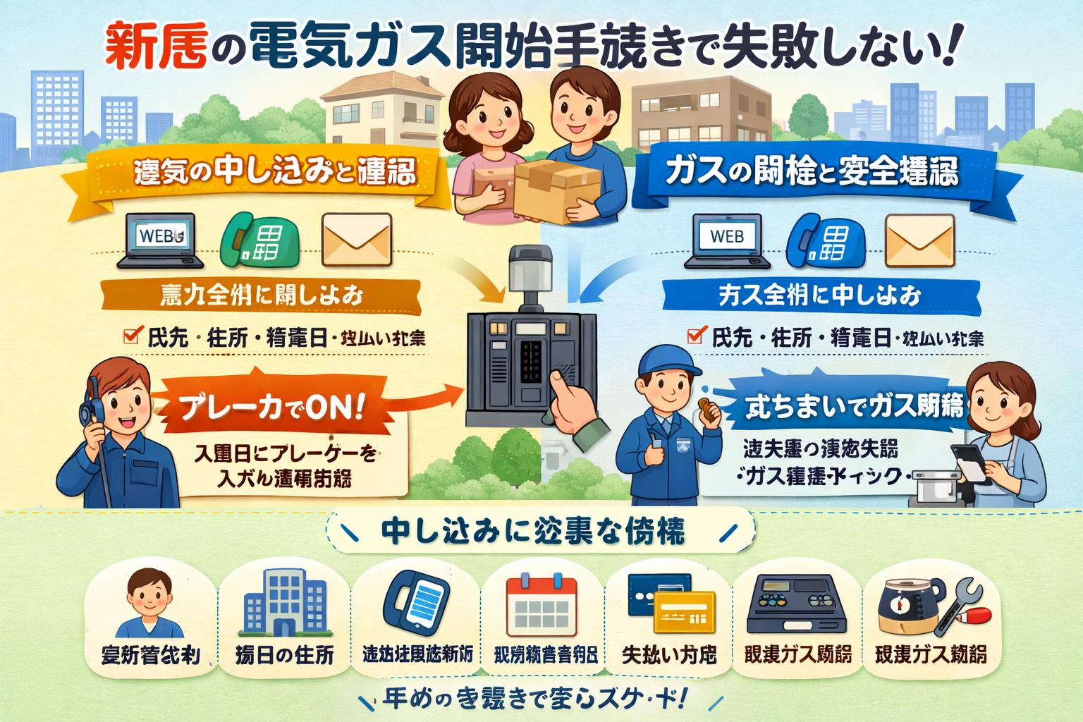 引っ越し先での新生活をスムーズにスタートさせるためには、電気とガスの開始手続きを適切に行うことが不可欠です。旧居での手続きと同様に、新居での手続きにもいくつかの注意点があります。特に、入居日に電気やガスが使えないといった事態を避けるためにも、早めの準備と正確な情報把握が重要になります。