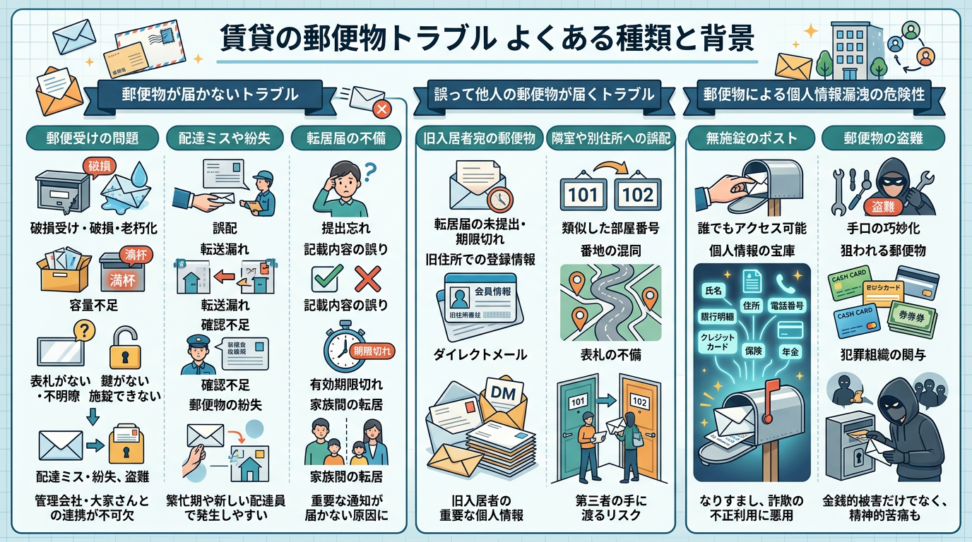1. 賃貸の郵便物トラブル よくある種類と背景