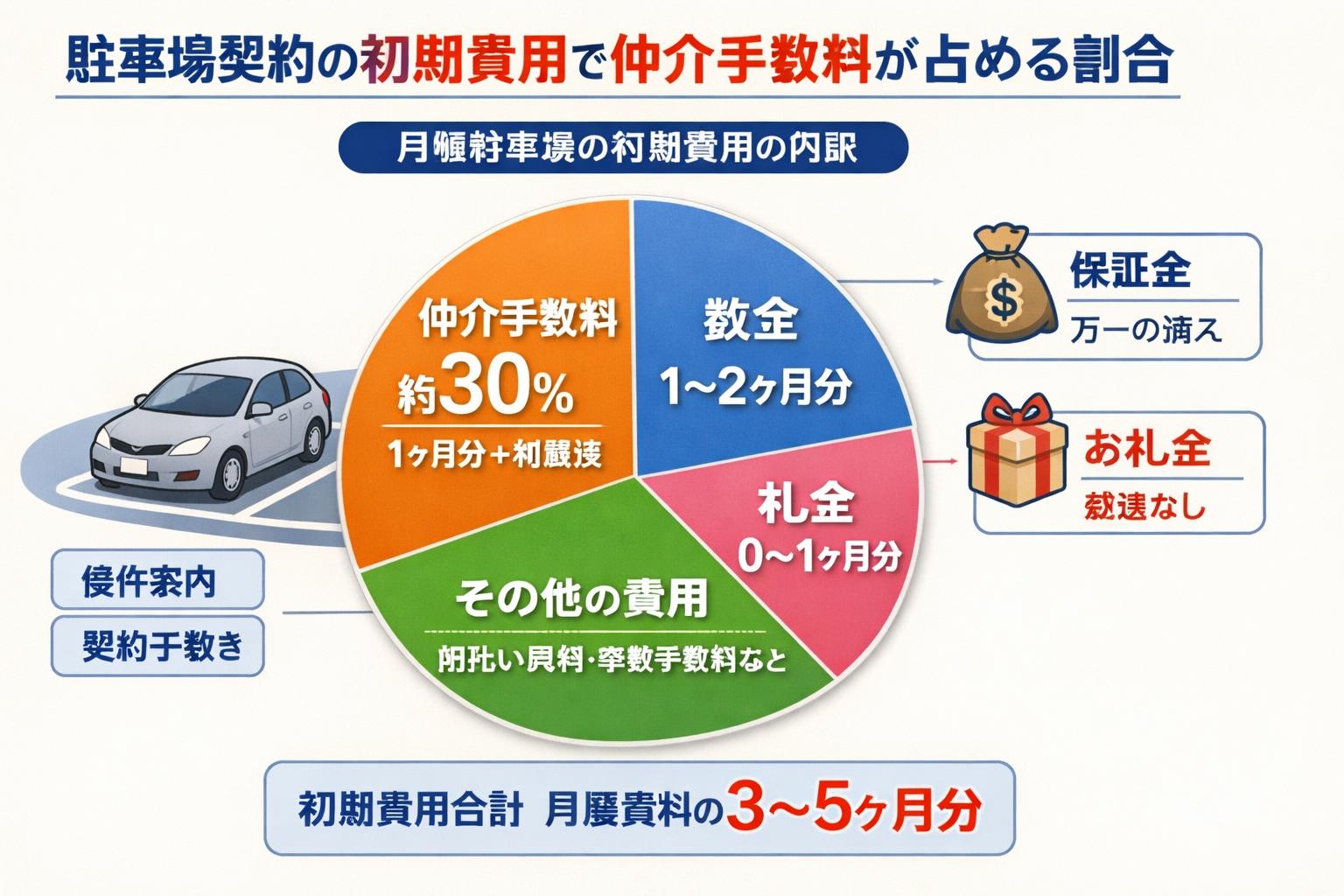 3. 駐車場契約の初期費用で仲介手数料が占める割合